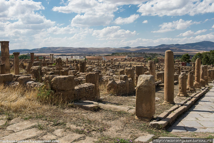Одни из наиболее масштабных римских руин в Северной Африке оставил древний город Джемила, ставший в наши дни музеем под открытым небом. Первоначально город имел форму квадрата, в котором было множество улиц, а две главные из них, перпендикулярные друг другу, делили территорию на 4 равных части. Это было крупное поселение, включавшее несколько храмов, амфитеатр, форум, рынок, бани и многое другое.