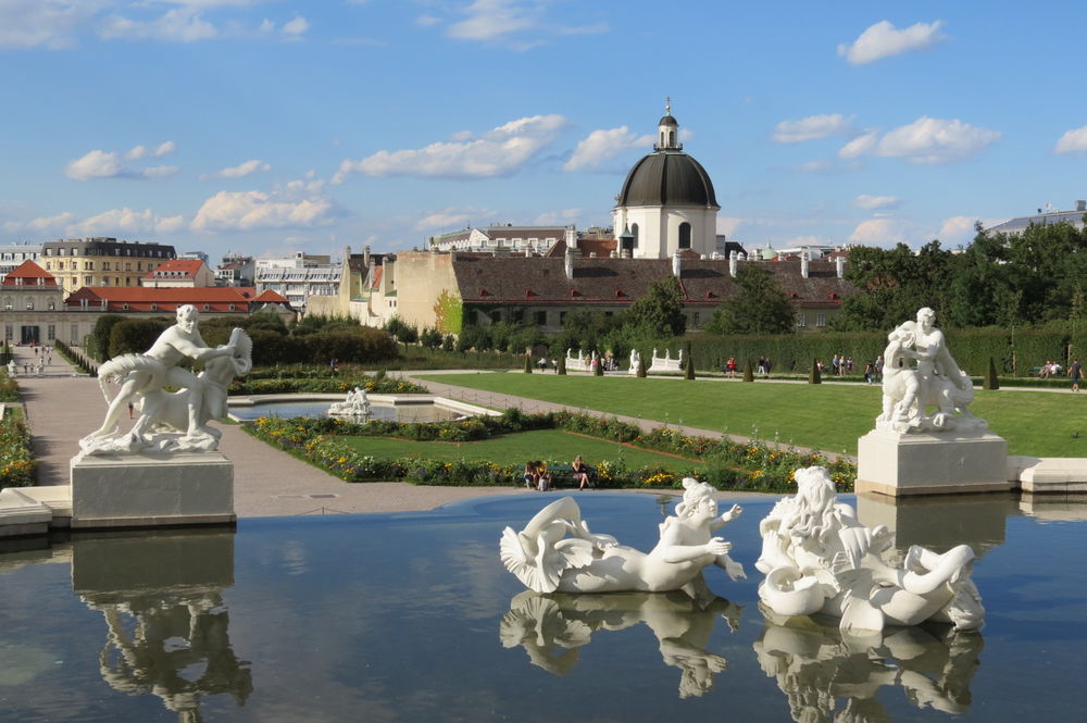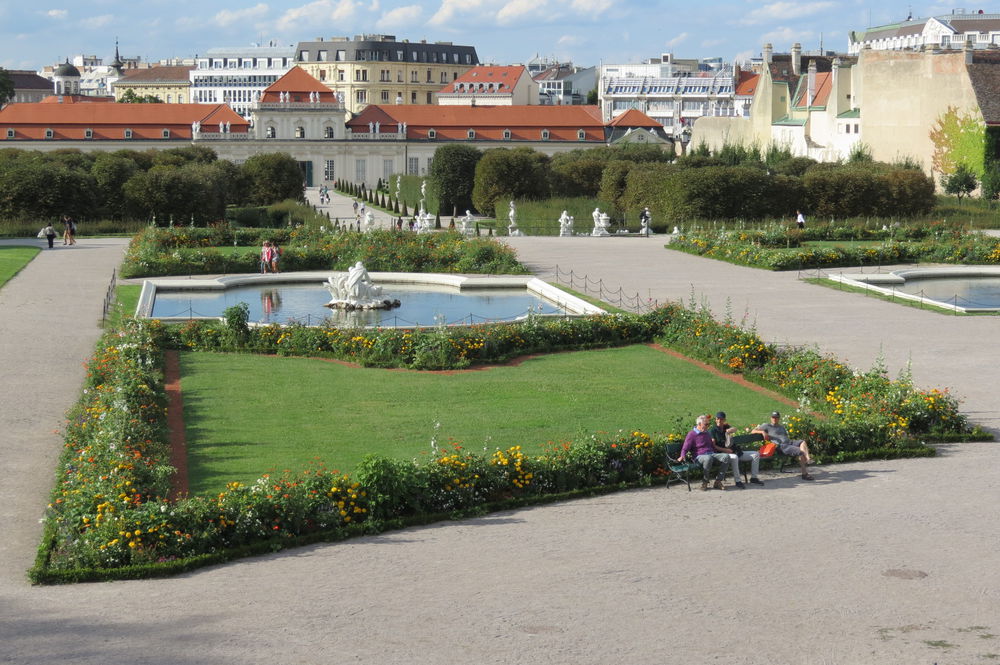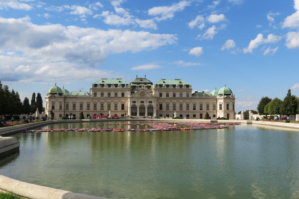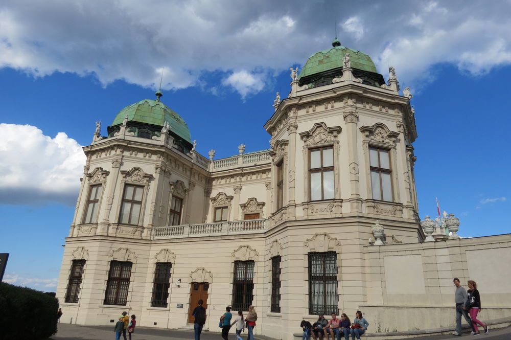 Погуляв по Парку часа два, и четко осознав, что гуляли здесь видимо верхом на лошади, а для пеших прогулок здесь нужен минимум день!, мы опять же выловив наш автобус в гуще других (Дворец мегапопулярен и такого количества автобусов на одной дороге я еще нигде не видела!) мы отправились к другому дворцу с говорящим названием Бельведере, что означает в переводе — красивый вид. Насколько он красив, Вы можете увидеть сами.