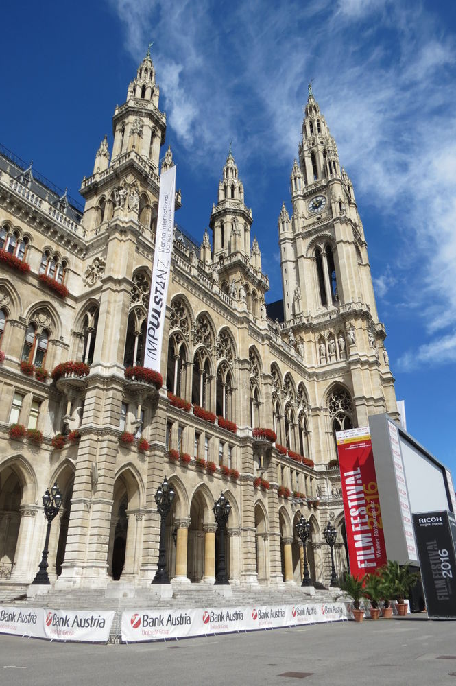 Со ступенек парламента были заметны шпили другой достопримечательности, мы поспешили к ней и попали на самое незабываемое место место в Вене с нашей точки зрения — это Венская Ратуша или Rathausplatz