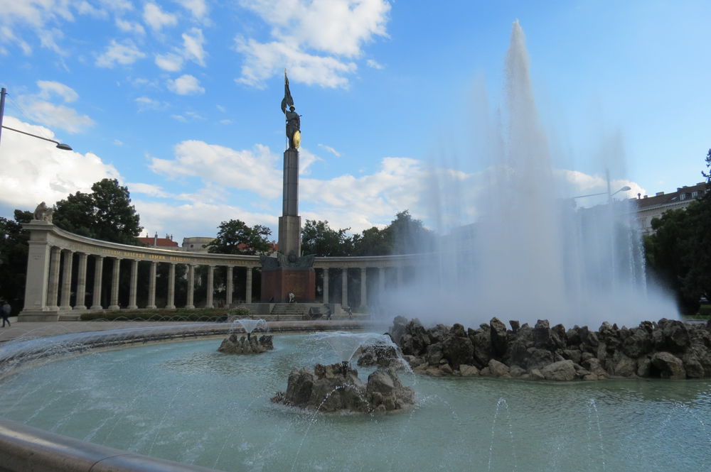 После Дворца мы вышли к еще одной прекрасной достопримечательности. Это памятник, на котором написаны такие слова «Вечная память героям красной армии, павшим в боях с немецко-фашистскими захватчиками за свободу и независимость народов Европы!». Памятник очень красивый, с чудесным фонтаном.
