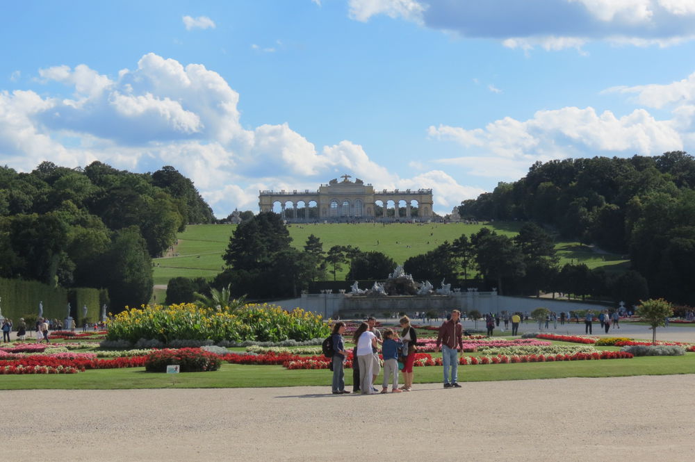 Итак, проехав полный круг по главной красной ветке, объединяющей основные достопримечательности города, мы перепрыгнули на зеленую, чтобы доехать до очень известного и любимого туристами Двореца Шенбрунн, который являлся основной летней резиденцией австрийских императоров династии Габсбургов и считается одной из крупнейших построек австрийского барокко. Вот, что пишет о дворце Википедия: «Шенбрунн – один из самых красивых дворцово-парковых ансамблей Европы.