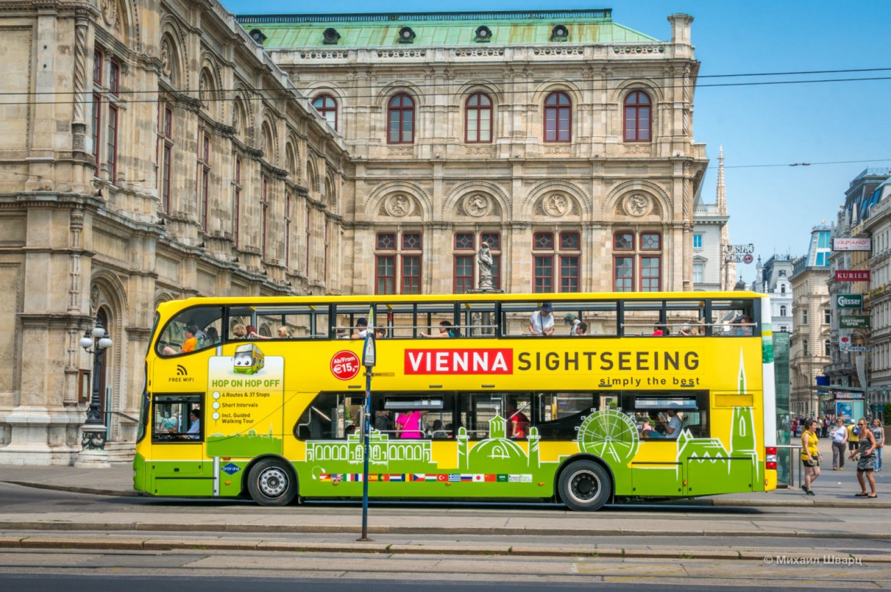 Красный экскурсионный автобус Big Bus Tours Vienna предлагает 2 варианта путешествия. Останавливается у Венской оперы.