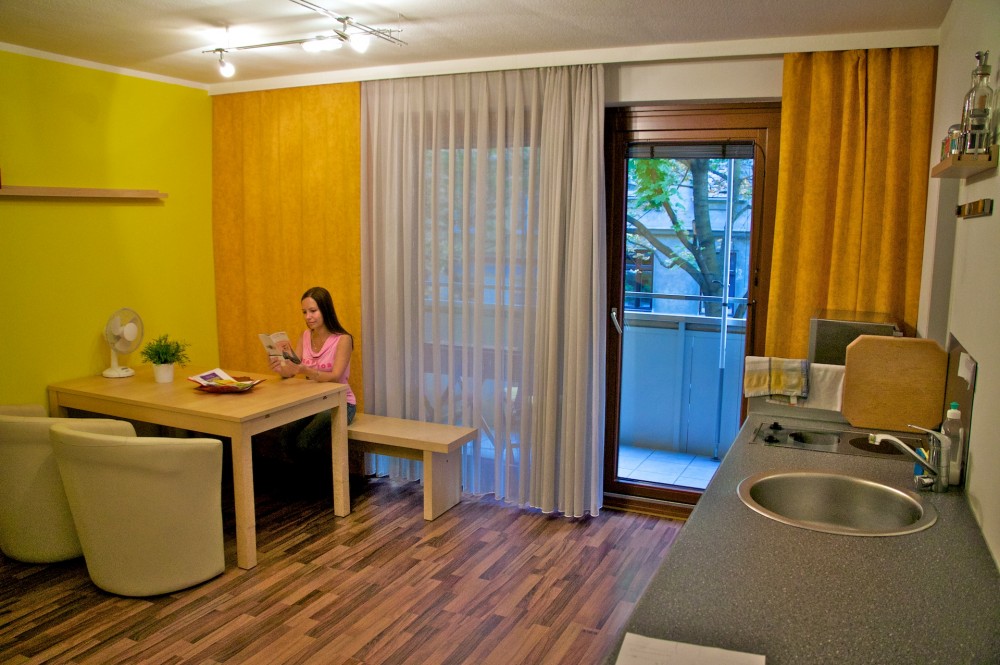 Снять по Интернету апартаменты, либо квартиру-студию гораздо удобнее на AirBnb.Вы получите все преимущества независимого проживания, сможете самостоятельно готовить еду. Продукты лучше всего покупать в магазинах сетей Merkur или Hofer.