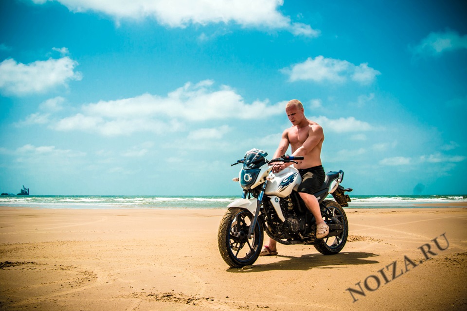 Я поехал за байком в Мандрм, по приезду, меня даже не мучили муки выбора, так как среди скучных черных скутеров стоял один белый байк, из толпы своего красавца я увидел сразу. Новая, белая YAMAHA FZ, с оптикой не как у всех и ксеноном. Отдав за него 7000 рупий, я стал на месяц счастливым обладателем, симпатичного байка. Теперь буду как принц, на белом коне.