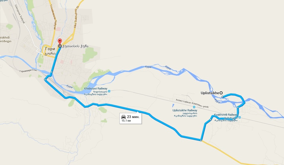 | Маршрутное такси | До автовокзала Гори на маршрутке, а дальше по ул. Чавчавадзе до перекрестка с ул. Сталина |