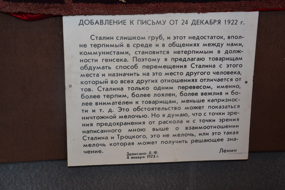 1. Хотя Ленин и Сталин были идейными союзниками в деле революции, однако Ленин не хотел, чтобы к власти пришёл Сталин. Этому подтверждением является письмо, записанное под диктовку Ленина его помощником и адресованное членам партии, когда Ленин уже был практически при смерти.