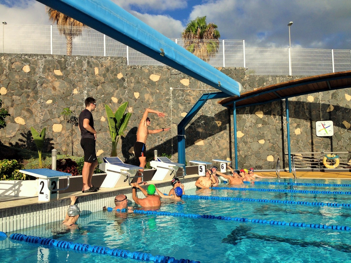 Гораздо больше нам понравилось плавать в бассейне нашего спортивного центра Tenerife Top Training. В 25-метровом бассейне под наблюдением тренеров спортсмены разминались и делали упражнения на технику. А потом в 50 м бассейне делали основную тренировку по заданию.