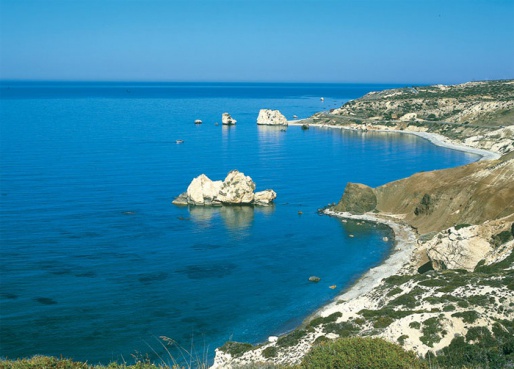 Бухта Петра-ту-Ромиу. Недалеко от Пафоса, где, по легенде, вынырнула Афродита, остался огромный валун Петра-ту-Ромиу. Тому, кто доплывет до обломка скалы и коснется его, та же легенда сулит красоту, молодость и прочный брак. Неподалеку на пляже Афродиты влюбленные ищут камешки в форме сердца как символ вечной любви. Я не плавала к волшебному валуну, потому что на море были сильные волны. Придется вернуться на Кипр еще раз.