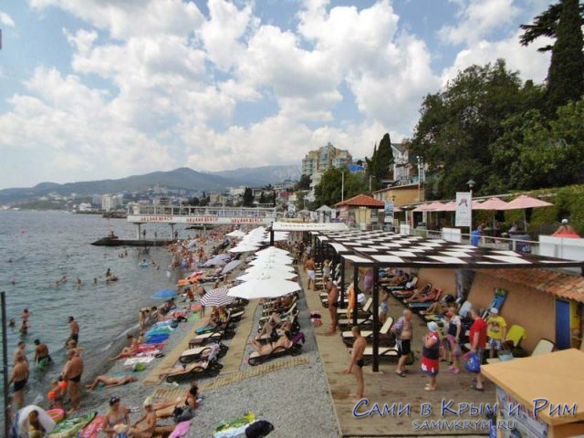 Самым популярным и многолюдным является городской «Приморский» пляж . Он находится в центре города. Ориентир – набережная Ялты, гостиница «Ореанда» .
