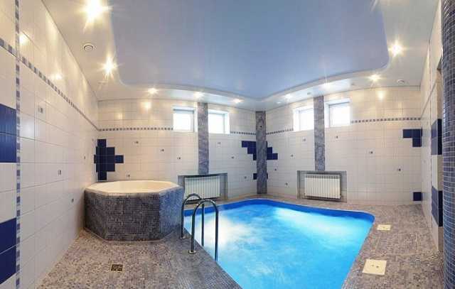 – перед бассейном расположена зона отдыха со спортивными тренажерами, профессиональным парикмахерским креслом и раковиной, а также санузел с японским многофункциональным унитазом.