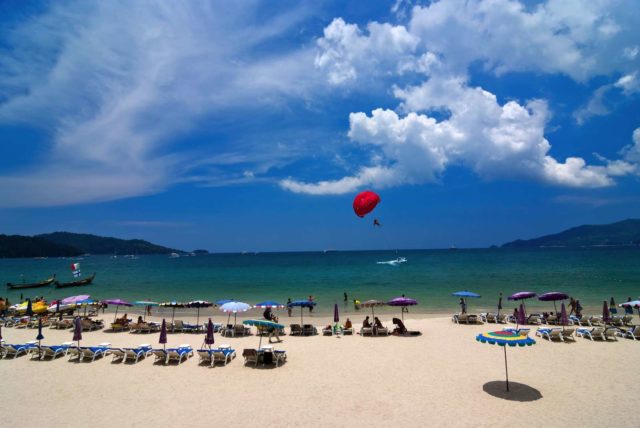 Чего греха таить: погода на Пхукете во второй половине января – просто рай. К концу января – началу февраля начинается «высокий сезон», когда поток туристов достигает своего максимума. Море теплое, погода жаркая и ветра практически нет, а на бескрайнем песчаном побережье просто яблоку упасть негде. Да и в воде, кстати, тоже.