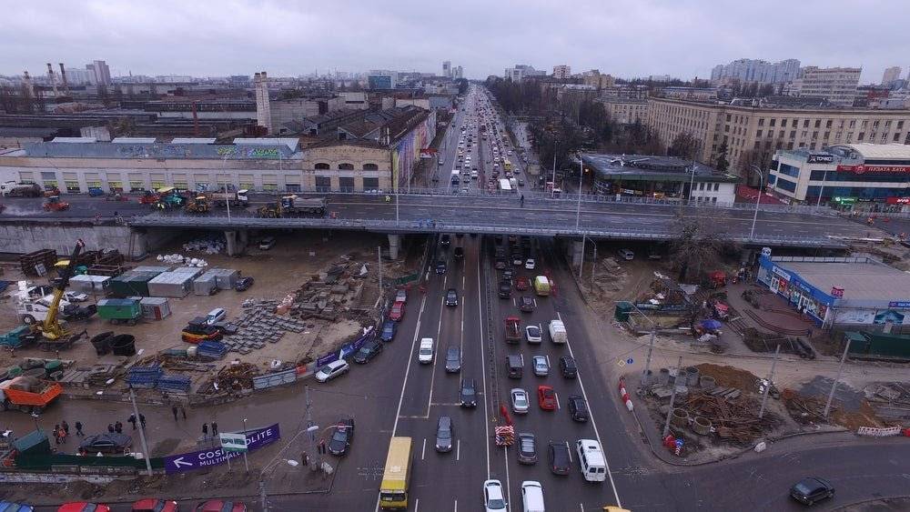 Сейчас из-за предстоящих работ закрыты съезды на пересечении проспекта Победы и улицы Гетьмана. Движение транспорта запрещено по правоповоротным съездам с путепровода: с улицы Гетьмана на проспект Победы и с проспекта Победы на улицу Довженко. Водители могут объехать участок по таким схемам: улица Борщаговская – Воздухофлотский проспект – Воздухофлотский путепровод; улица Зоологическая – улица Дегтяревская – улица Александра Довженко.