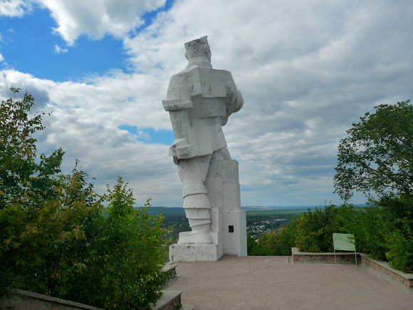 Отсюда хорошо виден памятник Артёму, советскому партийному руководителю. Это монументальное изваяние из железобетона 28 метров высотой.