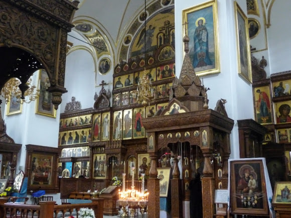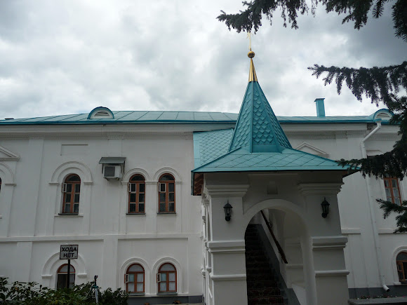 Конечно, я нашла открытый вход на заднем дворе и попросила разрешения у послушника зайти на подворье. Я понимаю, что нужно благословение настоятеля, но его не было в ските. Послушник, крестясь и молясь, пропустил меня, а другой, работающий на крыше, слез и рассказал о храме и о жизни братии.
