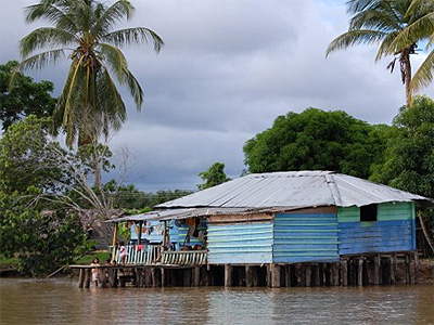 На берегах реки встречаются дома индейцев на сваях, без стен, прямо над водой, (для защиты от частых половодий) и они сообщаются между собой на лодках (каноэ).