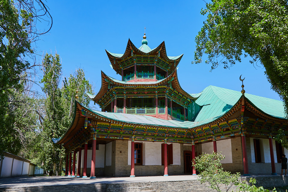 Дунгане, или хуэй – это те же китайцы, но от хань они отличаются тем, что исповедуют ислам. В Китае хуэй живёт около 10 миллионов, у них имеется даже свой автономный район. В 1881 году дунгане бежали в Россию вместе с уйгурами, и первоначально и те, и другие жили в Семиречье, но в ХХ веке дунгане перебрались западнее, и ныне их анклав – Чуйская долина, примерно по 50 тыс. дунган живёт в Джамбулской области Казахстана и Чуйской области Киргизии. Их в Казахстане гораздо меньше, чем уйгуров, и в современности они куда менее заметны – но архитектуру они обогатели гораздо сильнее. Потому что китайцы-мусульмане даже мечети строили в своей, китайской, традиции.